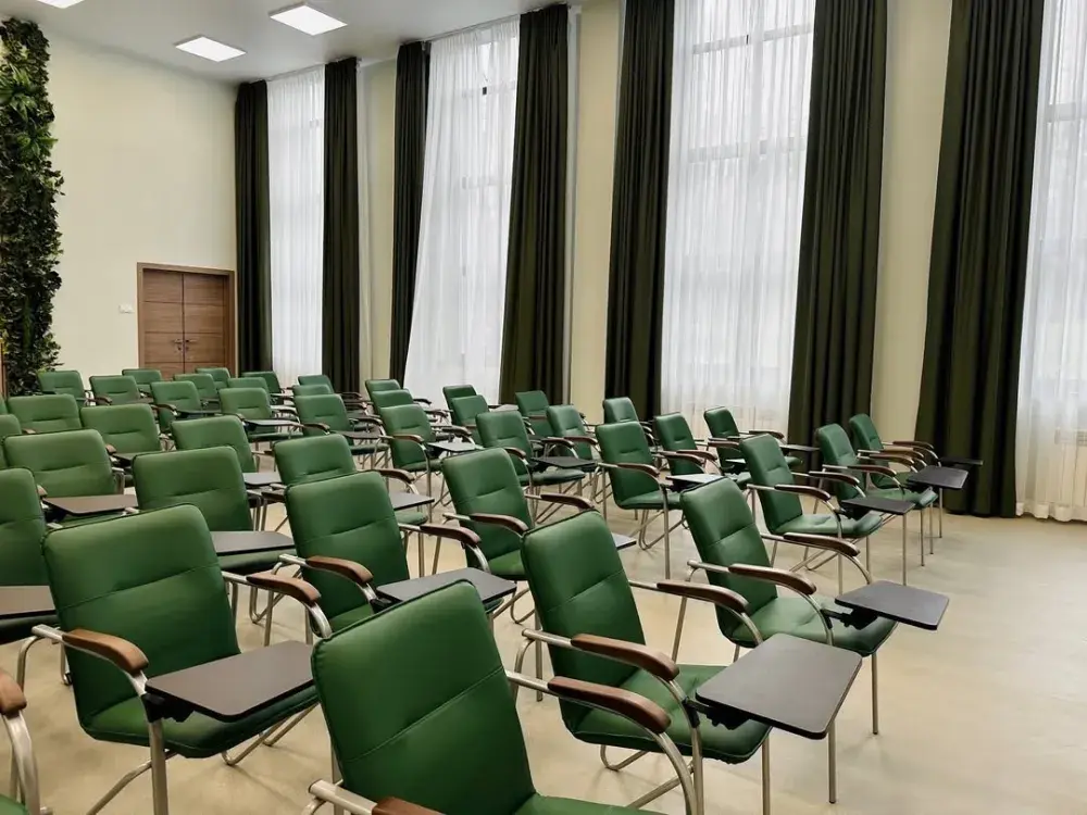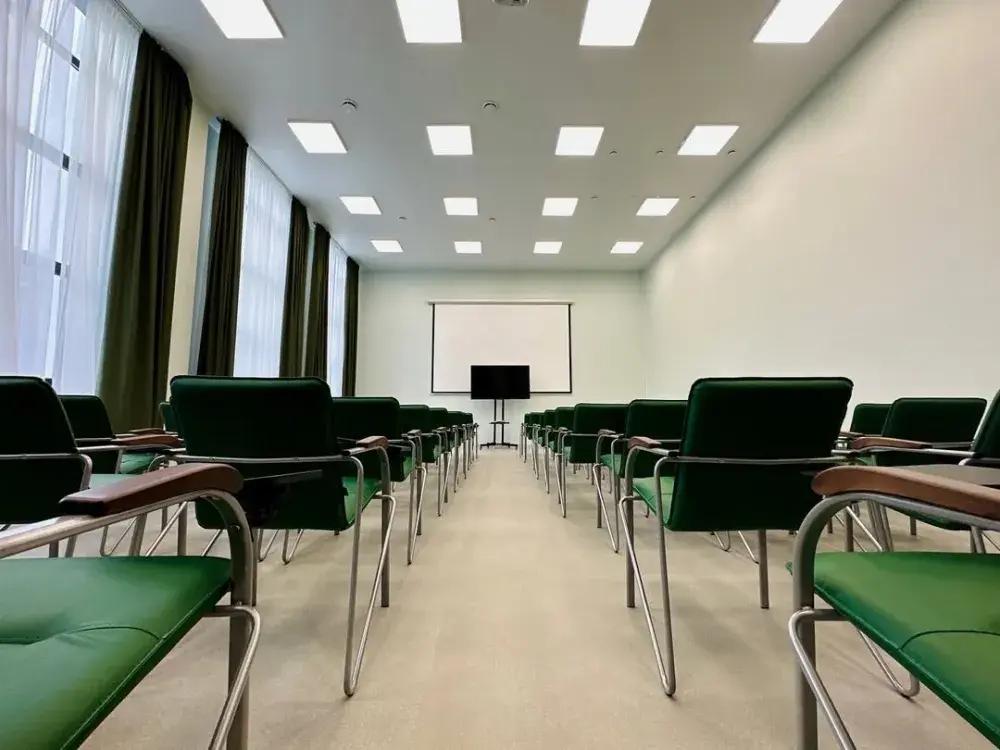 Новый конференц-зал в термальном комплексе «Хвоя» — место, где деловые встречи проходят с комфортом, а идеи рождаются в атмосфере уюта.
